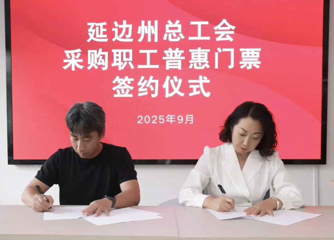 星期四09月11日延邊州總工會舉行采購職工普惠門票簽約儀式 助力職為慶祝中華全國總工會成立100周年,全面落實吉林省總工會關于構建全時空職工高品質生活服務體系指導精神,豐富拓展全州職工思想政治引領體系,根